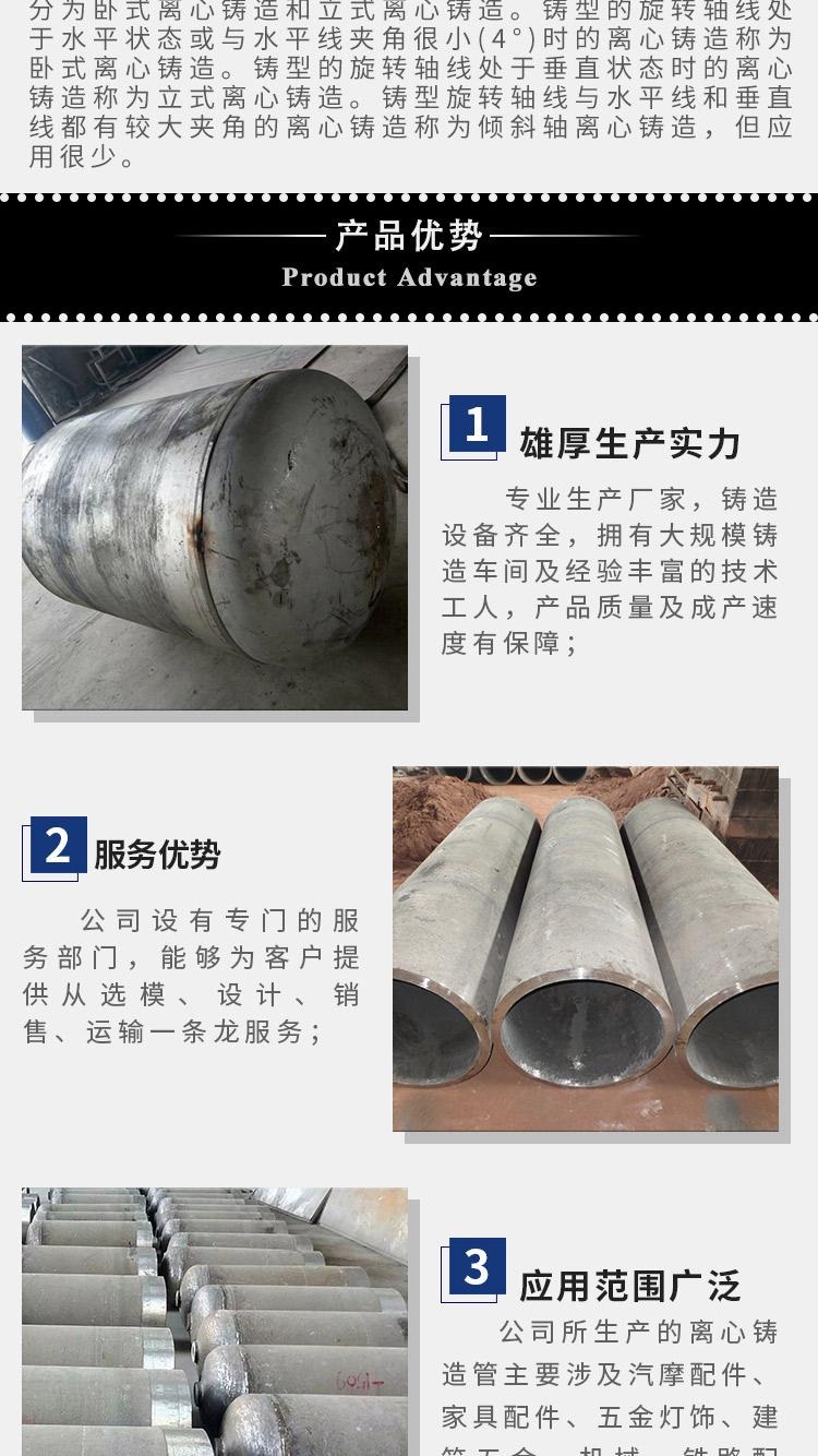 ①鐵管:世界上每年球墨鑄鐵件總產(chǎn)量的近1/2是用離心鑄造法生產(chǎn)的鐵管